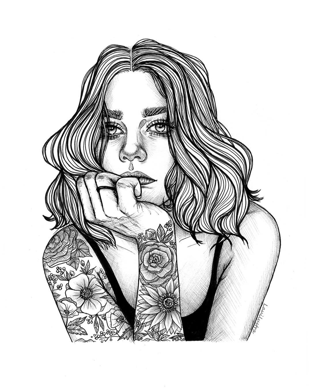 «En mis ilustraciones me inspiro en la naturaleza, las plantas, los animales y en la figura humana, sobretodo en la figura femenina, me inspiran mucho los rostros, las miradas, mis propios sentimientos y pensamientos, el mundo del tatuaje también es una gran fuente de inspiración para mí, por eso me empeño tanto en tatuar las pieles de mis retratos.»